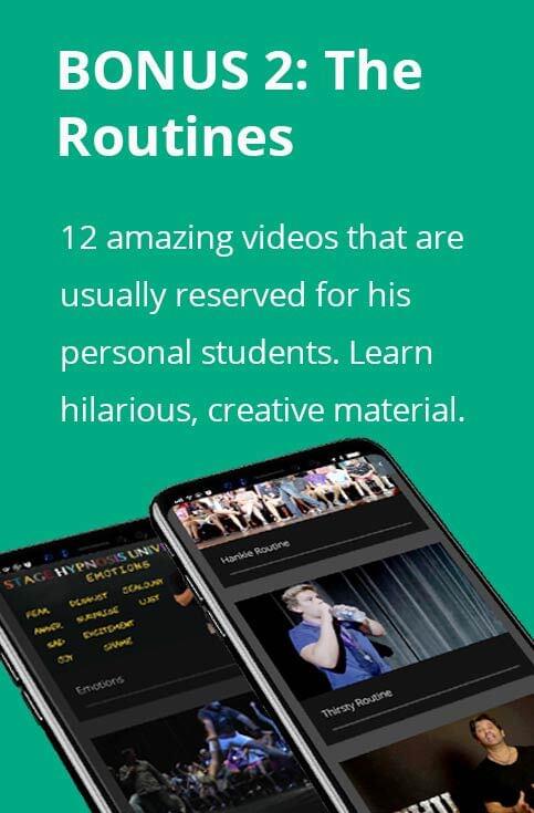 There is the entire video lesson on routines that Michael normally reserves for his Stage Hypnosis University students. He’s generously giving this to you as part of this package. He holds nothing back in showing you how to craft hilariously entertaining shows!