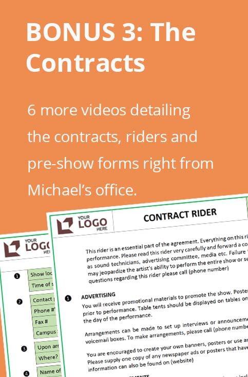 Learn how to make things run smoothly. Avoid surprises and disasters. Michael has been performing professionally for over 25 years. What he shares in this bonus lesson is incredibly valuable for anyone who intends to do the same.